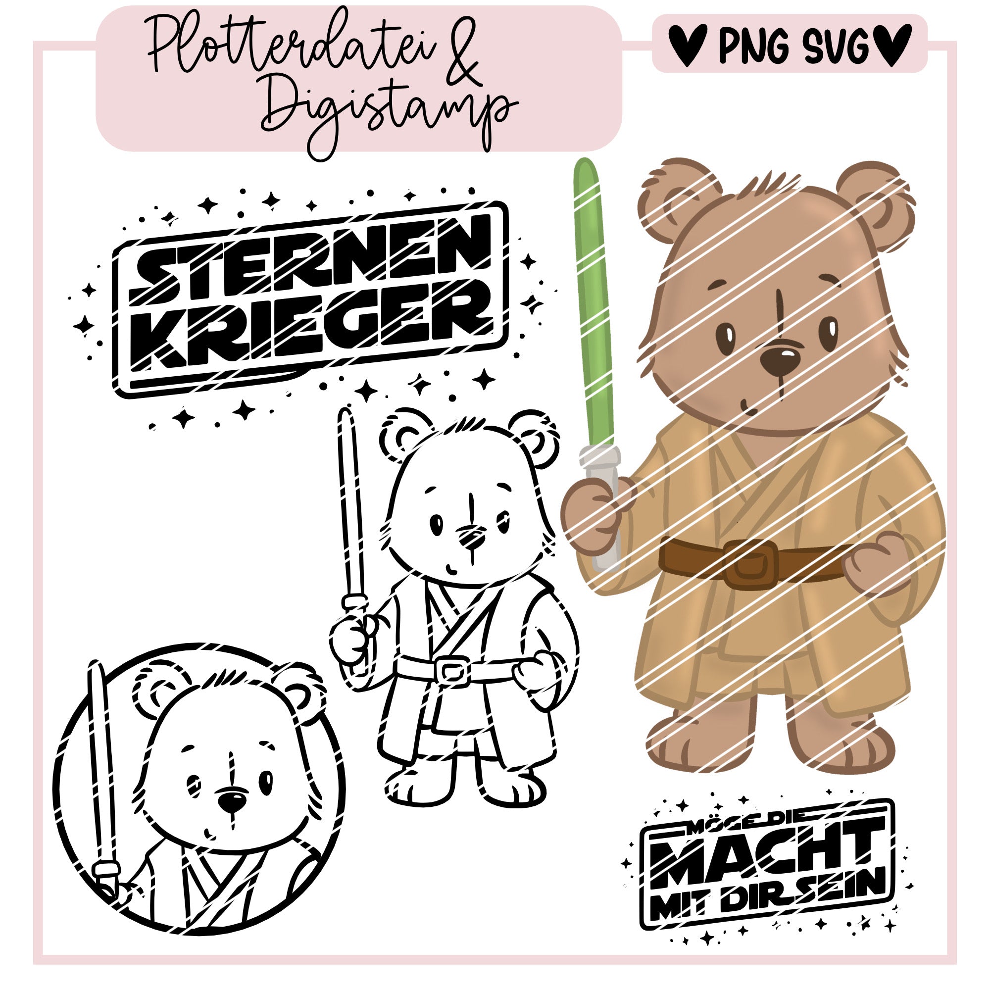 Plotterdatei und Digistamp Teddy als Sternen Krieger.