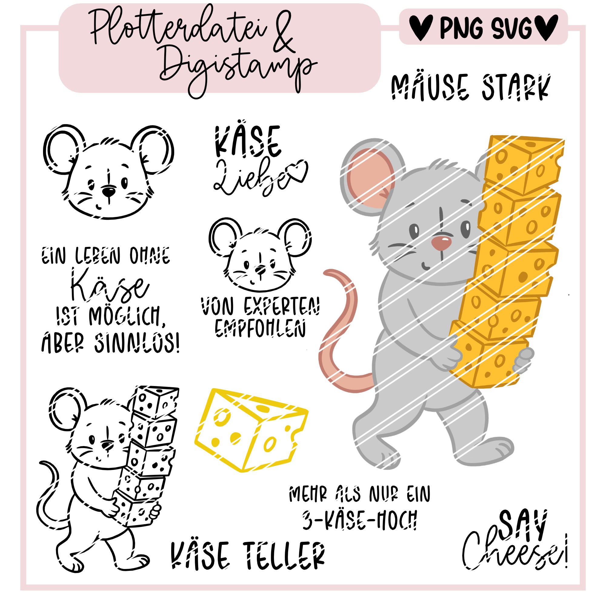 Plotterdatei und Digistamp von der süßen kleinen Käse Maus. Perfekt für alle Käse Fans und süßen Mäuse da draußen.